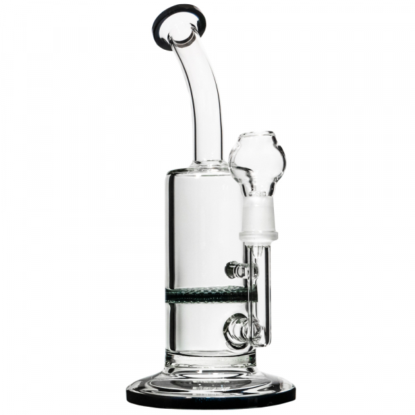 Наш герой - это не просто бонг, это настоящий гурман среди бонгов, оснащенный перколятором, который не только охлаждает дым, но и фильтрует его с умом, достойным самого эрудированного профессора. Представьте себе: каждый вдох через этот бонг - это как шаг по стеклянному мосту над водопадом чистоты и прохлады.