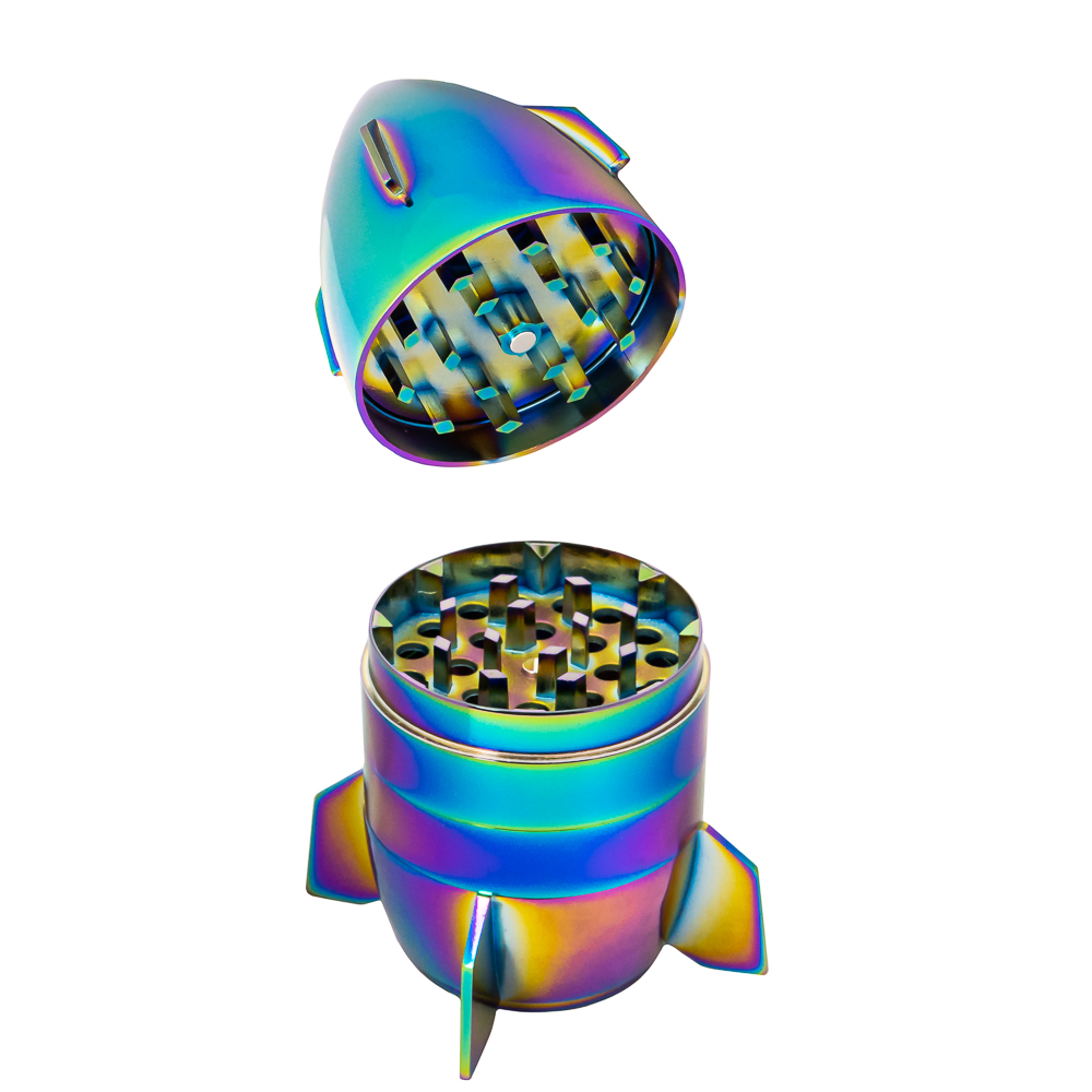 Гриндер Champ High Icy Spaceship — это высококачественное устройство для измельчения трав и сбора пыльцы, выполненное в уникальном дизайне космического корабля. Этот гриндер привлекает внимание своим ярким, радужным покрытием и необычной формой, которая напоминает космическую ракету. Он идеально подходит для всех, кто ценит стиль и функциональность в одном устройстве.