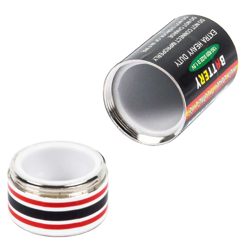 Контейнер выполнен в форме батарейки D-формата и покрыт фальшивой этикеткой, которая так правдоподобна, что даже опытные батарейные эксперты будут сбиты с толку. Она настолько реалистична, что если вы случайно забудете её в ящике с настоящими батарейками, то сами будете долго гадать, какая из них ваш тайник.